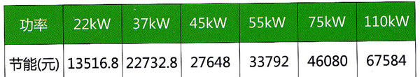 以上表(biao)格均為一天1 2小(xiao)時一年320天運行(háng)所節約的能效(xiao)價值。